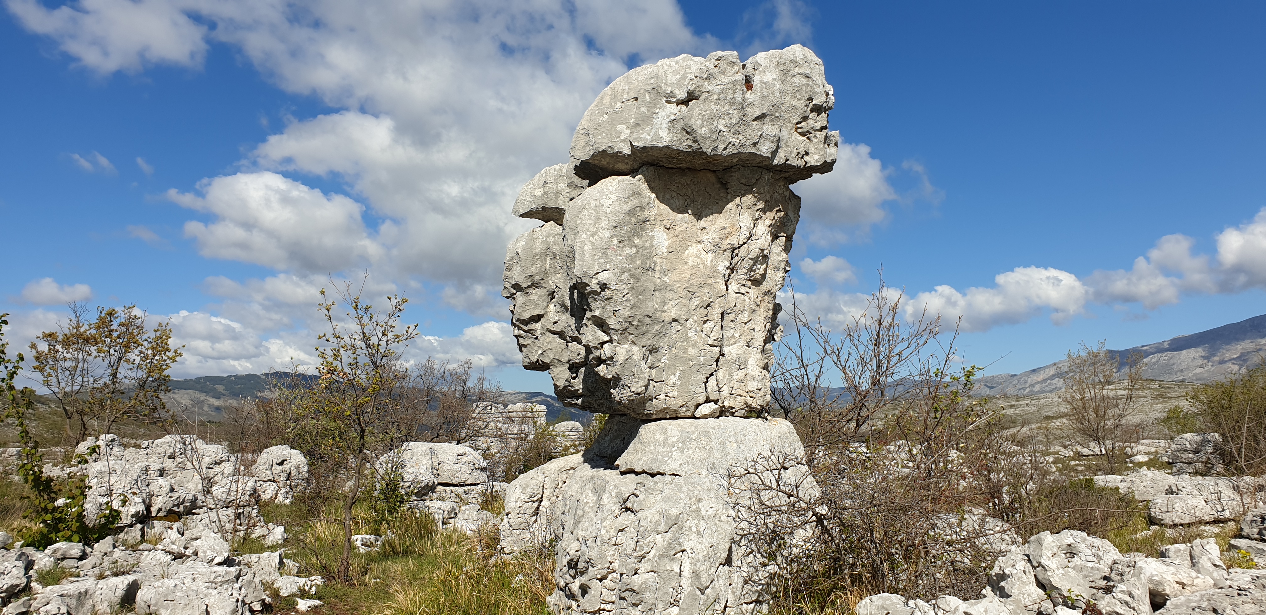 Programme de la randonnée n° 163: le Plateau de Saint Barnabé au départ de Saint Barnabé. Enchâssé entre les massifs arrondis du Puey Subert au nord et du Puy de Tourettes au sud, le plateau de Saint Barnabé échappe aux influences maritimes et s’ouvre largement vers l’ouest, laissant pénétrer le mistral venu en droite ligne de haute Provence. La charmante oasis du hameau, avec sa chapelle et ses grands chênes séculaires, contraste avec l’austérité des pâturages environnants où les troupeaux d’ovins perpétuent une tradition pastorale rappelant celle des grands Causses du Massif Central. On admirera, chemin faisant, les roches calcaires stratifiées étonnamment sculptées qui donne à ce plateau karstique un visage lunaire. Exploration de la grotte de Fumada ou porte du diable – stalagmites et beaux reliefs de roches, visibles uniquement pour ceux qui se muniront de lampe de poche ! –