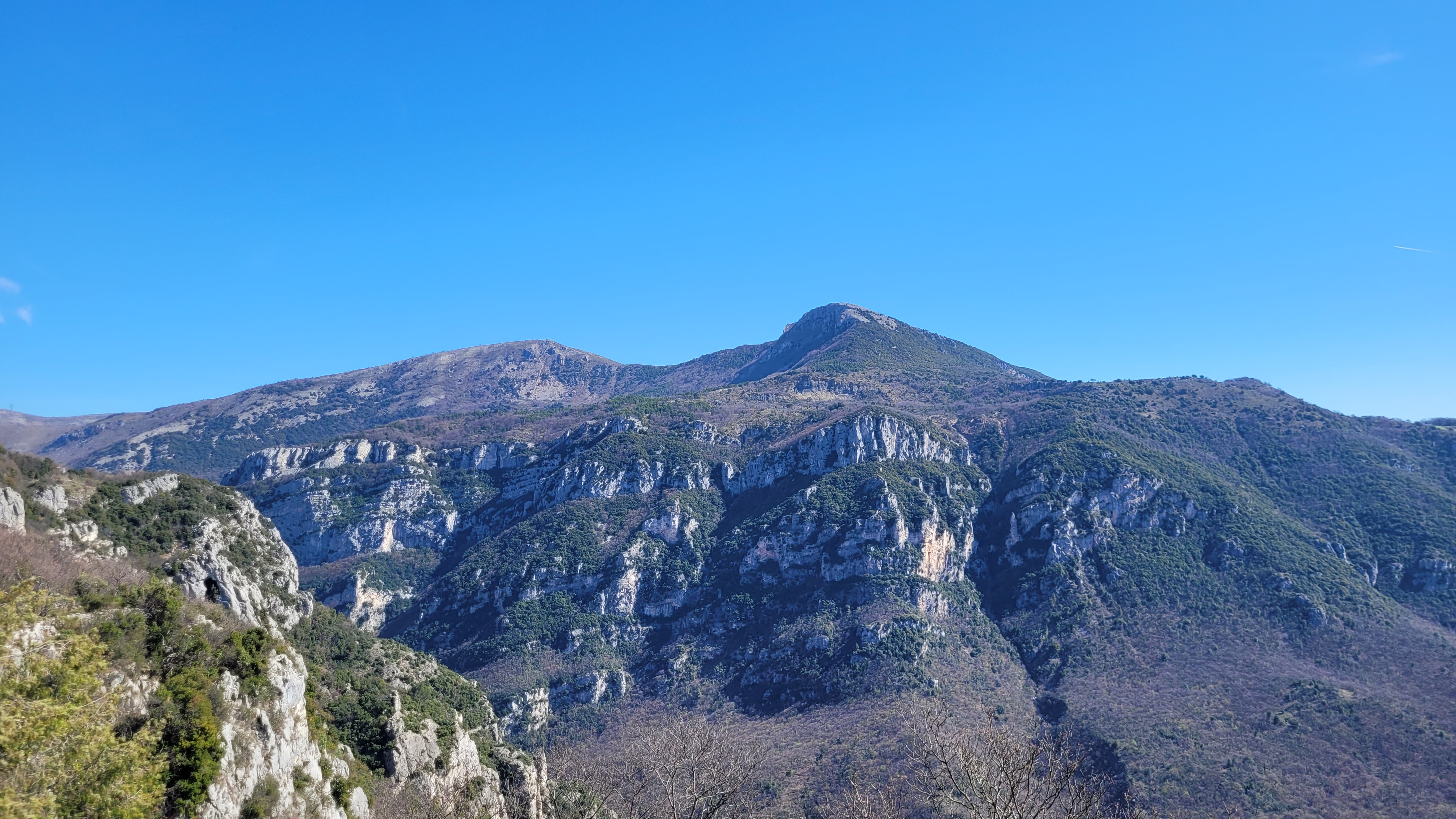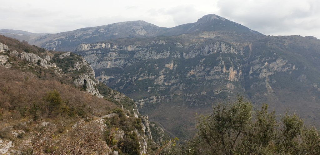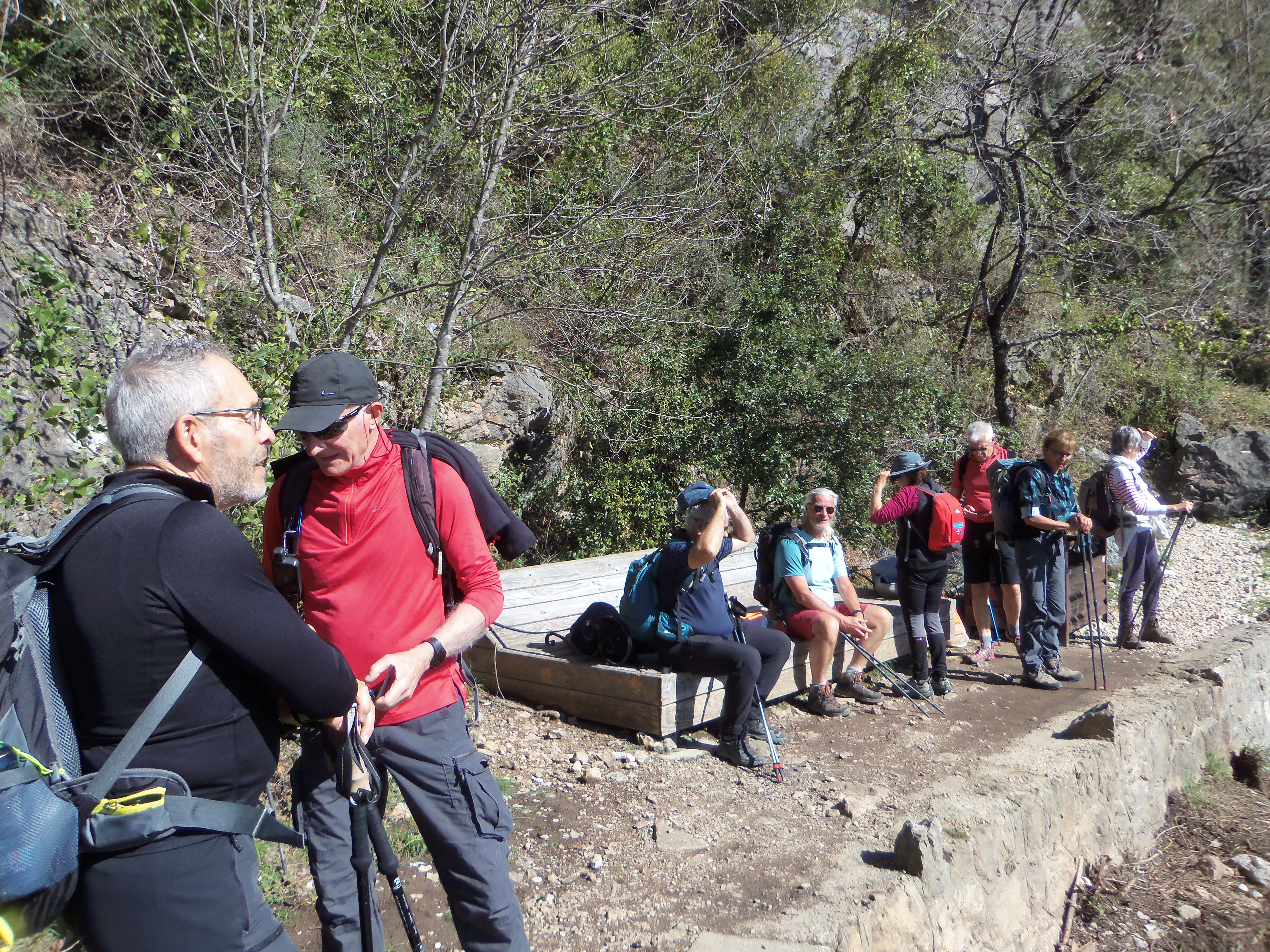 Le départ est sympathique puisque l’on marche en forêt avec un passage devant une petite cascade. Le sentier s’élève ensuite en lacets jusqu’au sommet sans aucune ombre. Et cette partie finit par paraître interminable et ne ressemble pas vraiment à l’image que l’on se fait du Paradis ! Et, en effet, vous serez surpris par la singularité de ce sentier pierreux, abrupt, qui serpente au milieu d’un relief presque vertical, aux impressionnantes falaises rocheuses (700m de haut) et avec des escarpements couverts par endroits de chênes pubescents (arbres caduques adaptés à la sécheresse). Il n’est pas facile d’atteindre le sommet. Le paradis se mérite !