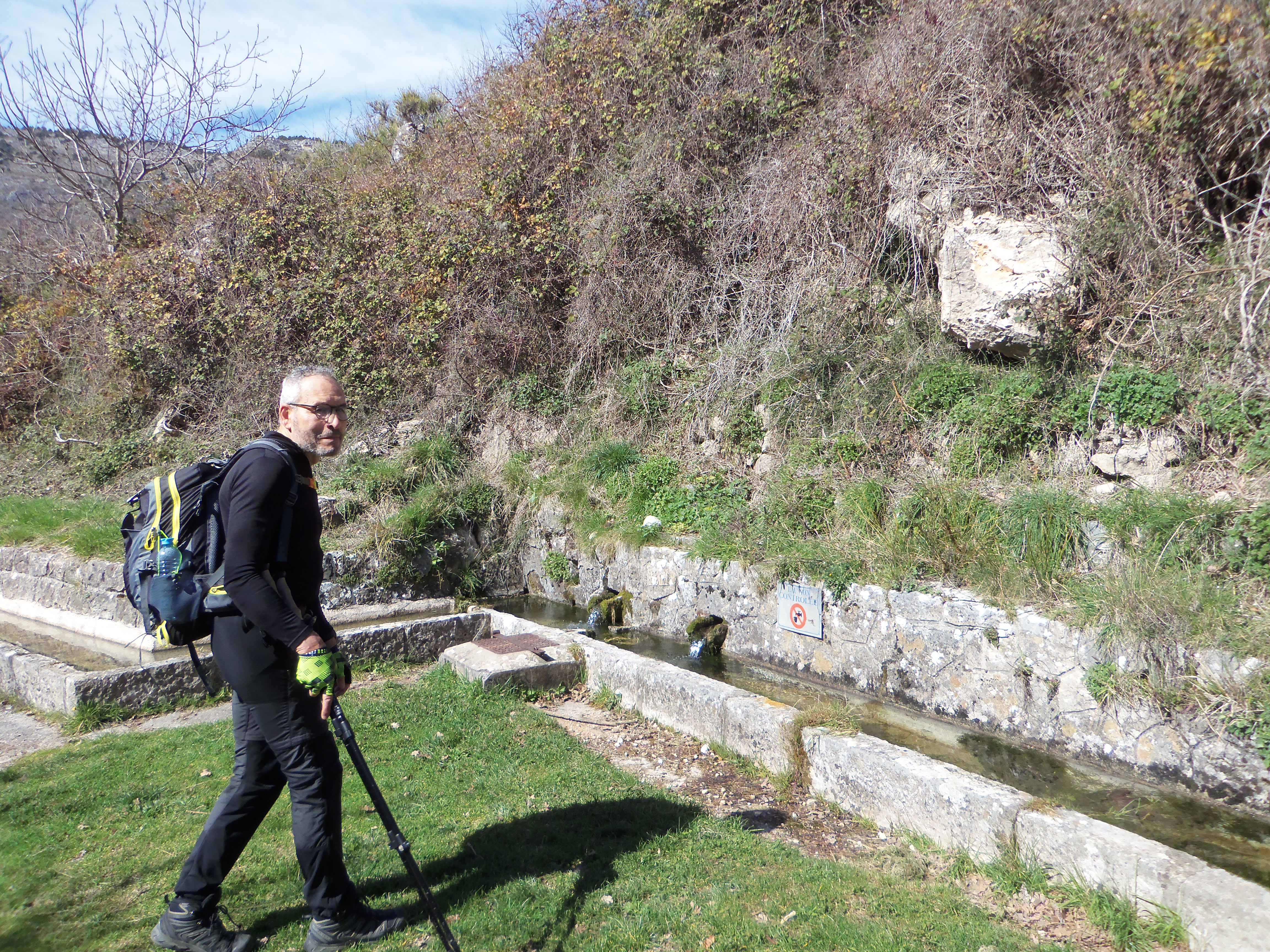 À l’approche de ce village perché sur un promontoire à près de 800 m d’altitude, les lacets s’empilent en même temps que se réduit l’espace disponible ; au-dessus du canal du Loup et de l’aqueduc du Foulon, la progression devient ainsi franchement aérienne alors que se dessinent les premiers toits et que retentissent les cloches de l’église égrénant les heures.