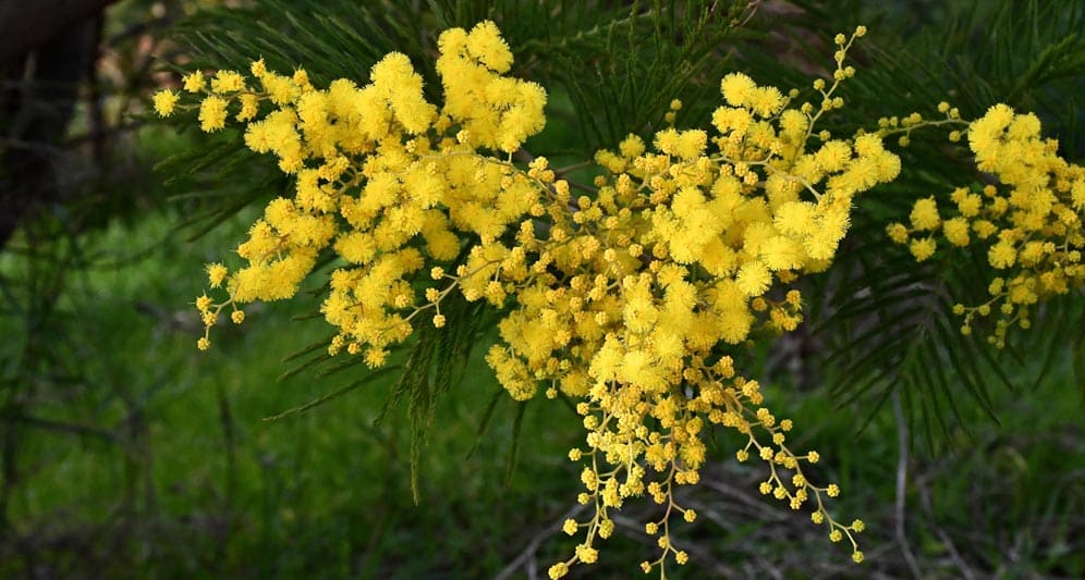 Ce massif se caractérise par une succession de collines à la végétation dense : la route d’accès, taillée dans le gneiss, se faufile entre les chênes lièges sur l’adret (versant colline ensoleillé), les châtaigniers sur l’ubac (versant à l’ombre), la bruyère, les pins et les mimosas sauvages. Entièrement dévastée en 1970 par un incendie et en 1985 par un froid intense, la forêt a aujourd’hui retrouvé toute sa vigueur. C’est au XIX° siècle que les mimosas, importés d’Australie par les Anglais nouvellement installés sur la Côte d’Azur, connurent un essor extraordinaire. Depuis, ils couvrent, de janvier à mars, les collines d’un épais manteau doré. De leur côté, les « mimosistes » locaux font fleurir le mimosa dans des forceries (25° C, taux d’humidité à 80%), et expédient dès janvier dans la France entière leurs bouquets odorants qui annoncent le printemps.