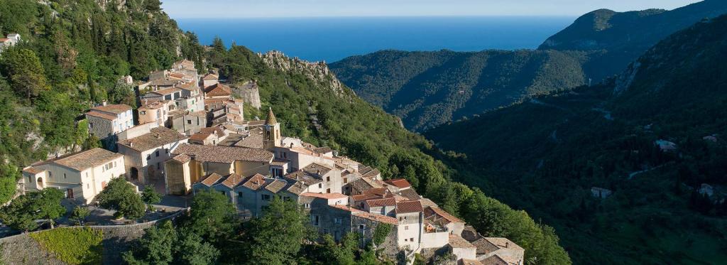 Belvédère juché au flanc d’un éperon rocheux, les vestiges du château-fort médiéval dominent Sainte-Agnès du haut de leurs 800 mètres : la vue sur la baie de Menton et la mer Méditerranée offre un fantastique panorama. Sentinelle inégalable, ce nid d’aigle a été la source de bien des rivalités au cours de son histoire.