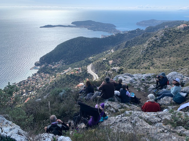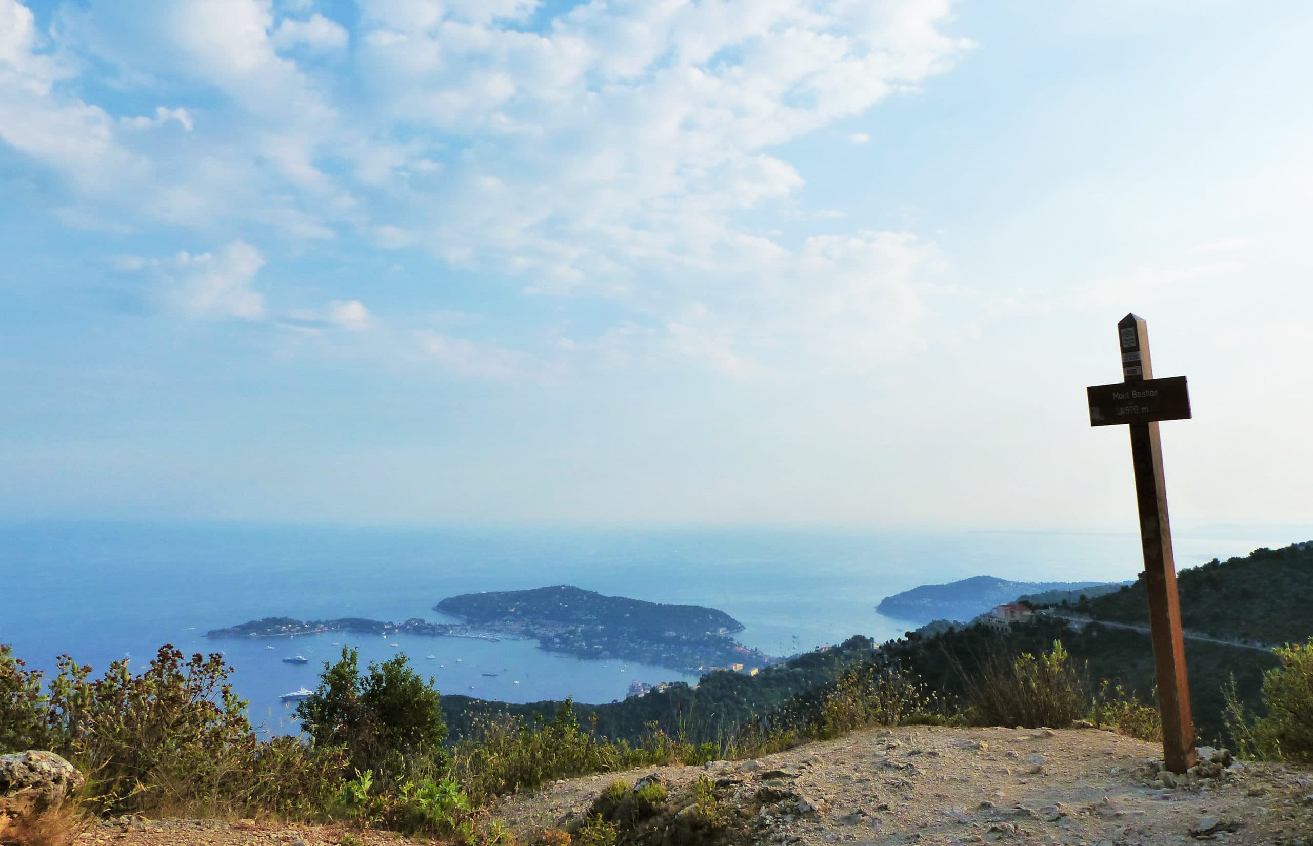 Cette randonnée fait partie des plus spectaculaires du littoral azuréen. Le sentier évolue entre crêtes dégagées, vues plongeantes sur la Méditerranée et horizons de montagne vers le nord. Par temps clair, le regard porte jusqu’aux sommets frontaliers de l’Italie, tandis que le parcours traverse un maquis parfumé, ponctué de sites historiques comme le Mont Bastide ou le Mont Vinaigrier.